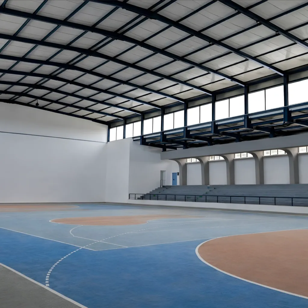 HASSAIRI STEEL INDUSTRIE (HSI) a assuré la conception et la réalisation de la structure métallique d’une salle de sport couverte, destinée à accueillir des activités sportives dans un espace fonctionnel, sécurisé et durable. Le projet se caractérise par la mise en œuvre de grandes portées, permettant d’obtenir un volume intérieur dégagé, sans poteaux intermédiaires, favorable à une utilisation polyvalente.